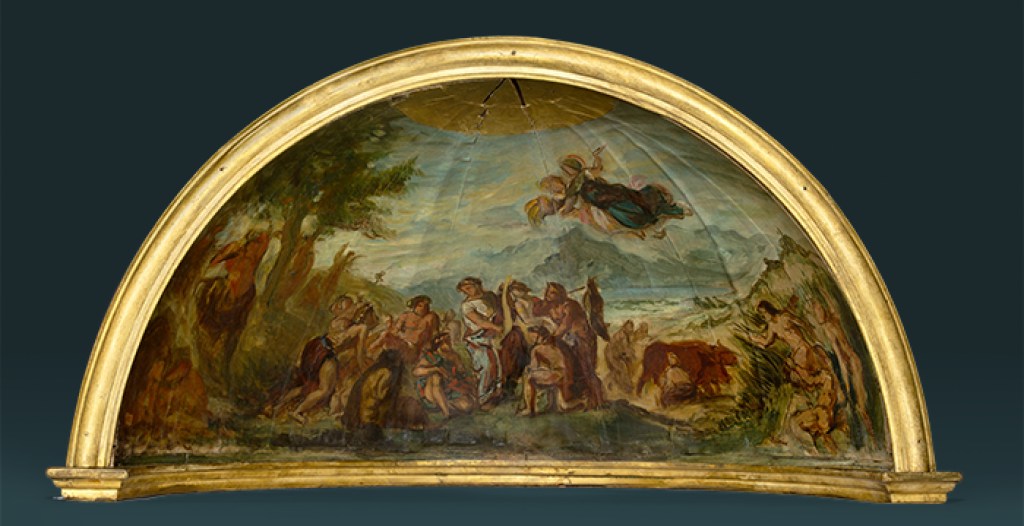 | La maquette pour Orphée vient policer les Grecs encore sauvages et leur enseigner les arts de la paix, conservée au musée national Eugène-Delacroix, est présentée et analysée sur la scène de l’auditorium du Louvre. Par Claire Bessède, musée Delacroix. |