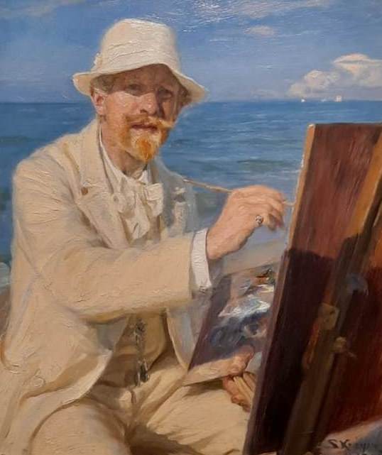Peder Kroyer était un maître de la lumière, que ce soit une lumière de plein jour comme dans Hip, Hip, Hip…Hourrah où on le voit trinquer joyeusement avec plusieurs de ses amis peintres, ou une lumière du soir qui va parer la nature de reflets aux teintes propres aux pays nordiques. Durant les longs crépuscules d’été, où le soleil n’en finit pas de se coucher, les rayons rasants créent une atmosphère étrange pendant ce moment particulier qu’est l’Heure bleue. Les ombres des personnages et des reliefs s’étirent en donnant une impression colorée, comme celles reproduites dans Pêcheurs de Skagen au coucher de soleil.