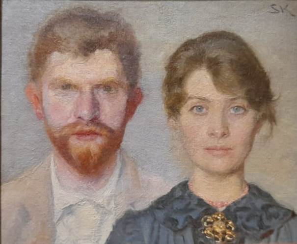 On ne peut pas évoquer la vie de Peder Kroyer sans Marie Triepcke, peintre elle-même, qu’il épousa en 1889. Ils s’associèrent pour brosser un double portrait touchant, chacun peignant l’autre, comme pour sceller une union qui tint par la suite une grande place dans la vie de l’artiste. C’est elle que l’on voit de dos avec l’une de ses amies dans Soirée calme sur la plage de Skagen , une œuvre caractéristique de l’art de ce peintre qui a su, par ce sujet simple, nous transmettre cette impression de bonheur, de paix et de langueur avec deux gracieuses silhouettes blanches sur une palette de sable et de bleu où la mer fini par se fondre dans le ciel. On la reverra dans de nombreuses scènes, notamment dans son jardin sur une chaise longue, à l’abri d’un somptueux rosier (Les Roses) ou avec sa mère dans Femmes au jardin, ou encore Peignant sur la plage accompagnée de son chien.