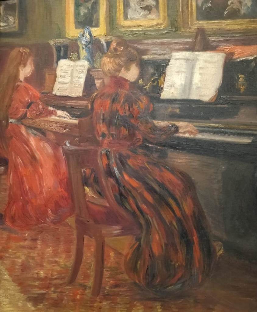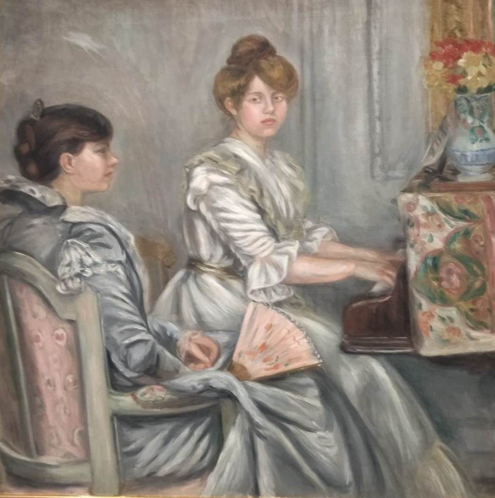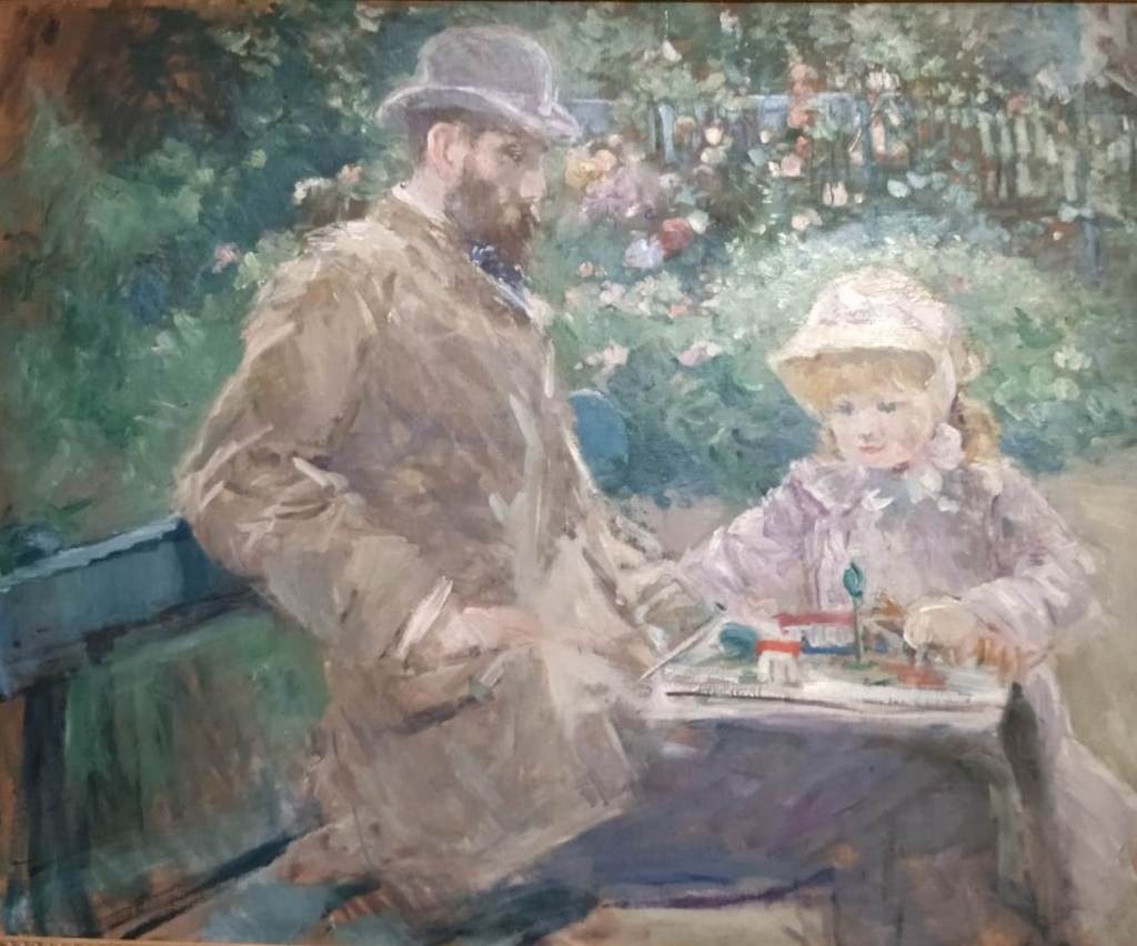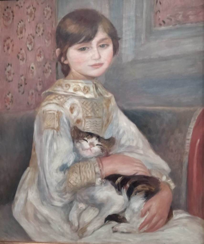 C’est ainsi que l’on peut admirer de nombreux chefs-d’œuvre de Berthe Morisot, dont les touchants Berthe Morisot et sa fille Julie et Julie Manet et sa levrette Laërtes, mais encore Eugène Manet et sa fille dans les jardins de Bougival, ou Paule Gobillard peignant et Paule cousant dans les jardins de Bougival. Parmi la famille figure bien sûr son père qui a peint Julie Manet écrivant et un Portrait de Julie Manet peignant. Son oncle, Edouard Manet a réalisé un Portrait de Stéphane Mallarmé très expressif et, au nombre des amis, voici Renoir qui figure en bonne place avec un Portrait de Julie Manet ou encore son charmant Jeune fille au chat. Il ne faut pas oublier Julie elle-même qui a peint un vivace Duo au piano ainsi qu’une toile où figurent ses cousines Portrait de Jeannie au piano et Paule l’écoutant