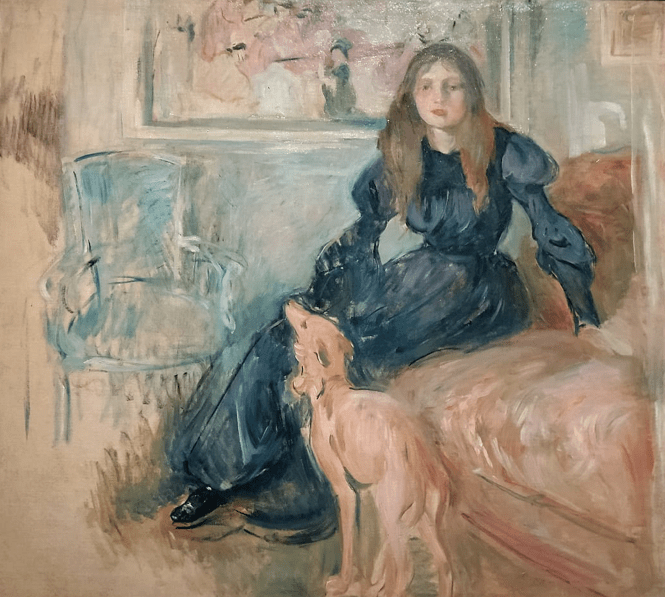 L’exposition s’intitule « Julie Manet, la mémoire impressionniste », un titre qui s’explique par le fait que Julie Manet, née en 1878, fut au cœur d’une galaxie d’artistes illustres, comme vous allez pouvoir en juger. Fille unique de Berthe Morisot et d’Eugène Manet, frère d’Edouard Manet, elle n’avait que 16 ans lorsqu’elle fut orpheline de ses deux parents. Elle eut à cette date Stéphane Mallarmé pour tuteur tandis qu’Edgard Degas et Pierre-Auguste Renoir veillaient sur elle, honorant ainsi la promesse qu’ils avaient faite à sa mère. En 1900 elle épousa le peintre Ernest Rouart, fils d’Henri Rouart, célèbre collectionneur d’œuvres impressionnistes. A la mort de sa mère, elle vécut avec ses cousines, Paule et Jeannie Gobillard. Cette dernière épousa le poète Paul Valéry, lui-même peintre à ses heures. On imagine aisément la richesse de la vie de Julie Manet !