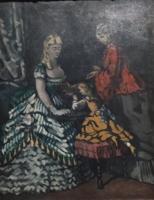 On débouche sur la Polynésie de Gauguin, pas moins de dix tableaux majeurs venus de Tahiti. Et voici Cézanne ! Quel choc ! On aimerait citer toutes ses toiles mais il y en a une bonne vingtaine ! Elles illustrent les périodes picturales traversées par le peintre depuis Scène d’Intérieur, en 1870. On partage son attrait pour les paysages, la montagne (l’incontournable Montagne Sainte-Victoire), la méditerranée, les portraits (Le Fumeur. Homme à la pipe, 1891) et son engouement pour les natures mortes et notamment les fruits (Nature morte. Pêches et Poires,1890).