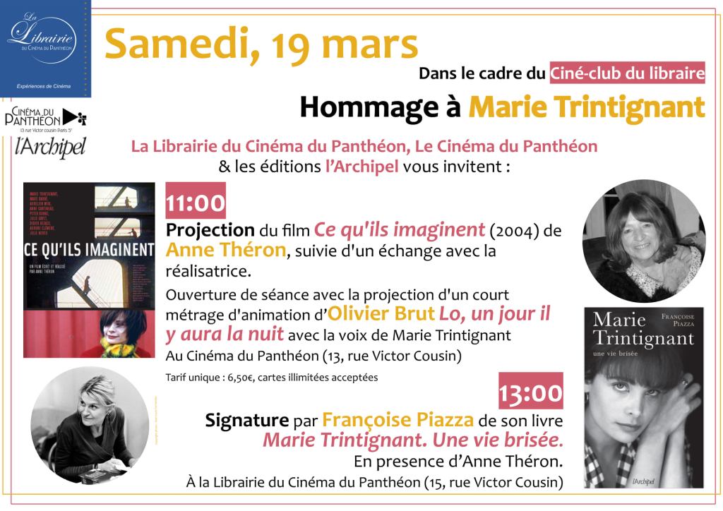 Suite à la présentation du film Françoise Piazza parle de son livre « Marie Trintignant une vie brisée » et échange avec Anne Théron réalisatrice du film leurs souvenirs de Marie en présence du libraire Hervé