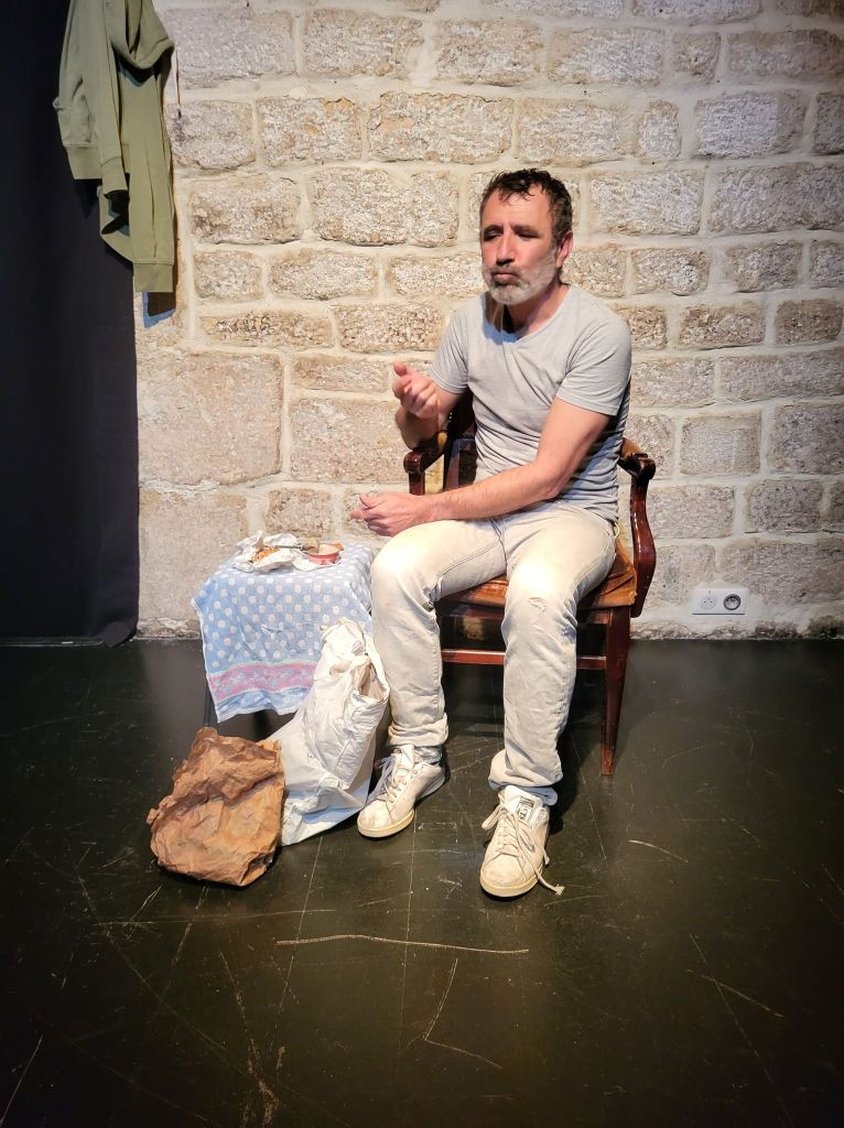 Emmanuel Darley a écrit cette histoire touchante d’un homme sans rancœur, qui déballe sa vie, ses petits moments de bonheur, ses échecs, surtout ses échecs, où le rire côtoie le tragique. Le texte, d’une délicate subtilité, est dit par Thierry de Pina qui en a assuré la mise en scène avec le Collectif Ah le Zèbre. Le personnage s’adresse souvent au public comme pour lui faire partager sa solitude, et il y parvient ! Il naît chez nous une âme de secouriste ! Nous aimerions lui crier qu’il n’est pas seul !