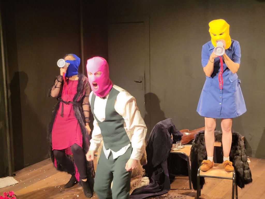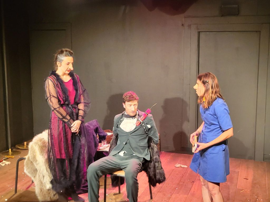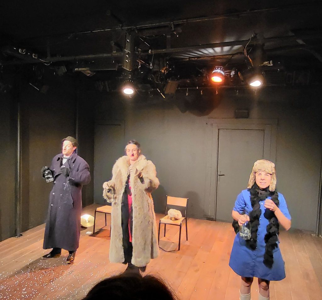 Ivan, 35 ans, un jeune homme timide, veut épouser Natalia. Il fait part de son projet à la mère de celle-ci qui se réjouit de cette union. Il entreprend de faire sa déclaration mais une dispute éclate entre eux au sujet de lopins de terres, c’est raté !. Il part mais à son retour ils se querellent à nouveau au sujet de leurs chiens…. C’est follement drôle, clownesque, on s’amuse tout en savourant le magnifique texte de Tchekov. Les comédiens, qui portent des faux-nez, donnent un spectacle enlevé qui nous transporte à mille lieues et c’est revigorant ! Un grand bravo à Pierre Ficheux, Lisa Labbé, Elodie Roussel et Julie Mori qui nous ont enchantés par leur enthousiasme et leur vivacité.