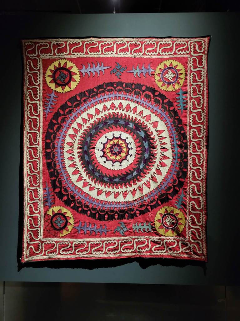 Une collection d’œuvres uniques, exposées pour la première fois hors des musées d’Ouzbékistan, est à découvrir à l’IMA. Soit plusieurs centaines de pièces, et autant de splendeurs confectionnées au tournant du XXe siècle, qui nous plongent dans l’histoire et les savoir-faire ancestraux d’un pays creuset de civilisations millénaires.