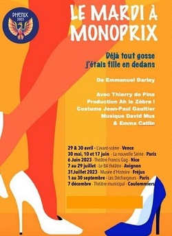 Au théâtre de L’Oriflamme au Printemps du Off 2023, les 8 et 9 Juin à 19h30 au 3-5 rue Portail Matheron, 84000 Avignon, et au Festival d’Avignon 2023, au théâtre de L’Oriflamme du 7 au 29 Juillet à 20h15, relâche les dimanches.
