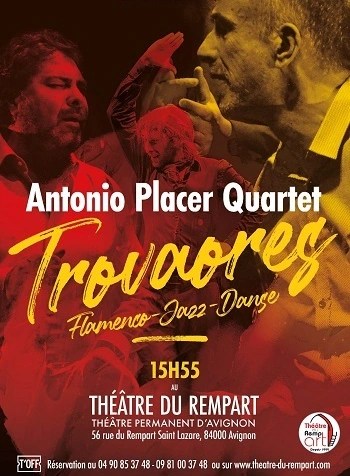 Un spectacle absolument hors du commun ! Quatre musiciens de très grand talent vont être sur scène pendant plus d’une heure pour nous faire découvrir des flamencos mêlés de sonorités de jazz d’une grande originalité. L’Antonio Placer Quartet Trovaores nous régale de chansons, de danses et de musiques comme on en a rarement entendu. Antonio Placer (auteur, compositeur, directeur artistique et chanteur) est accompagné de Javier Rivera, (chanteur flamenco et palmas), Juan Antonio Suarez dit « Canito » (guitariste) et Abel Harana (danseur flamenco et palmas). Nous avons retenu, entre autres, la virtuosité du guitariste, les belles voix des deux chanteurs et l’agilité du jeune danseur de flamenco et ses « zapateados y taconeos » endiablés. Certaines chansons, fougueuses et passionnées, nous prennent aux tripes et nous remuent au plus profond de nous-même.