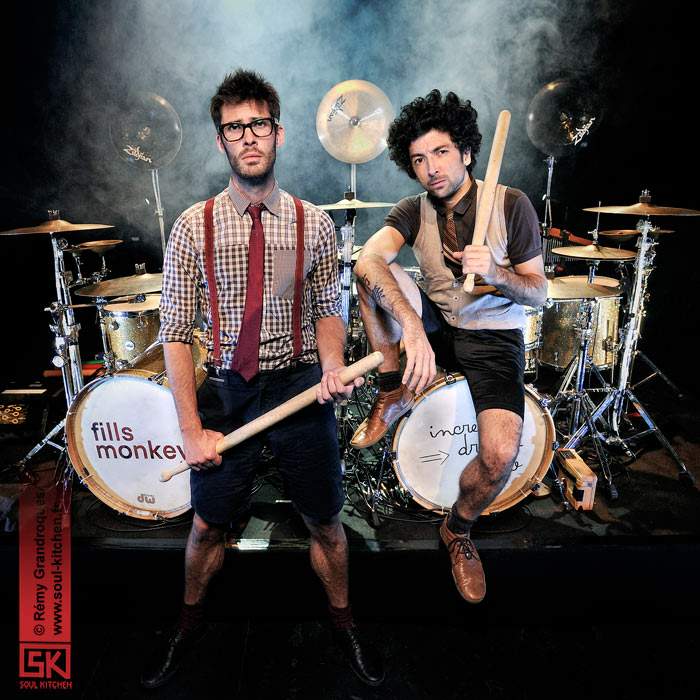 Fills Monkey, c’est l’histoire de Yann Coste et Sébastien Rambaud, qui, en 2005, décident de créer un concept à la folie ravageuse. Doté d’une imagination déconcertante, le duo nous entraîne dans son univers singulier avec une énergie rock et un humour ravageur. De la batterie aux instruments électroniques en passant par le banjo et le hang drum, ils jouent de tout, se répondent, se défient et s’amusent autant que le public.