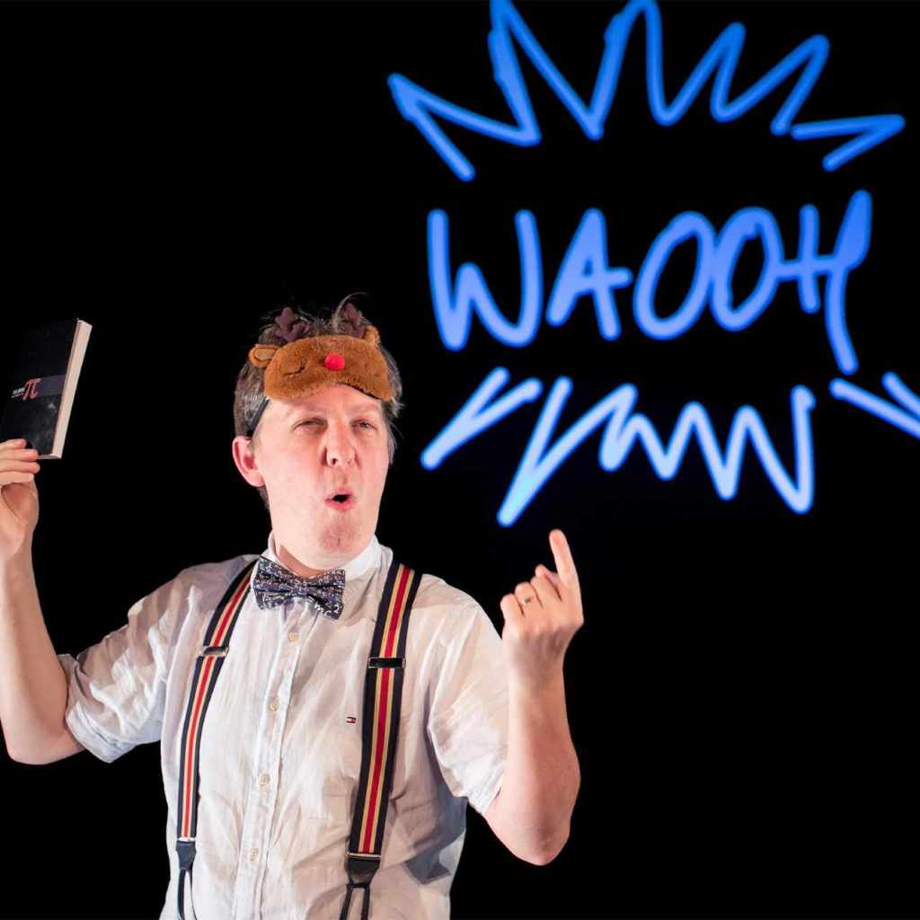 Un spectacle drôle, truffé d’anecdotes et de moments » Waooh » qui vous embarque pour un voyage ludique, pédagogique, à la passion joyeusement contagieuse et qui vous réconcilie avec les Maths.