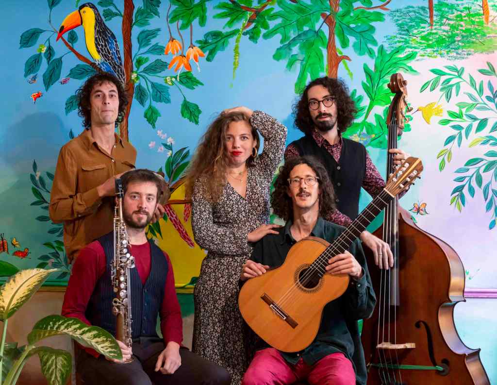 Quatre musiciens de grand talent :Matteo Carola ( guitare),Mathieu Robert (Saxophone),Filippe Caporali ( Contrebasse) et Falk Shrauwen ( percussions), accompagnent la voix chaleureuse de Stéphanie Scultore, dans un style mêlant chanson française, jazz et musique populaire Brésilienne.