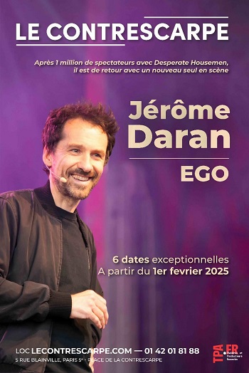 Jérôme Daran a le don de nous faire entrer de plein pied dans toutes ses aventures. Il nous offre ici un one man show hors-norme, très dynamique, intelligent, plein d’humour et bien rythmé.
