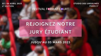 La 6ème édition du « Festival Format Court » se tiendra du 2 au 6 avril 2025 au Studio des Ursulines à Paris. Une compétition de 18 court-métrages et différents programmes thématiques seront proposés au public.