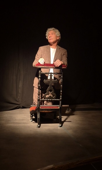 Laurent Balaÿ entre, seul en scène accompagné de Dieu !