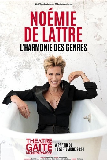 En ce moment à la gaité Montparnasse avec Noémie De Lattre, le spectacle se nomme » L’ harmonie des genres »: les vendredis 20 et 27 Juin à 19 h