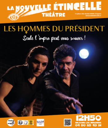 Dans Les Hommes du Président, tout devient possible. Une histoire se construit sous vos yeux, portée par deux comédiens très dynamiques que tout oppose, mais que l’envie de faire vibrer le public réunit Ici, chaque spectateur est complice, ils sont invités à glisser une phrase, à proposer une idée, ou même à monter sur scène.