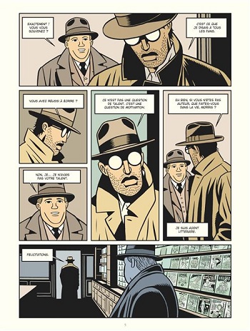 Ce double héritage donne à la BD une identité unique celle d’un polar nourri de fantastique, où la ville devient le théâtre d’une guerre intérieure celle d’un écrivain obsédé par la toute-puissance de ses mots. On lit à la fois une enquête sombre et un conte halluciné sur la folie créatrice et le désir de puissance. Graphiquement Brüno reste fidèle à son esthétique épurée, héritée de la ligne claire : contours nets, aplats de couleurs, lisibilité immédiate. Mais il s’en sert pour mieux jouer avec les contrastes avec ces silhouettes fantomatiques, ces ombres épaisses, ces décors minimalistes lourds d’ambiance. Mais là où Hergé ou Jacobs recherchaient la lisibilité, son trait, faussement simple, distille un malaise qui colle à la trajectoire d’Arbogast. Ce style, à la fois limpide et inquiétant, rappelle les bandes dessinées des années 1950 tout en les projetant dans une atmosphère noire et moderne. Les couleurs de Laurence Croix jouent construisent une partition contrastée avec ces tons sombres et glacés pour illustrer l’univers du polar et ces teintes vives et artificielles presque pop art, pour les séquences hallucinées. Une scène marquante le salon de coiffure où Iris, l’épouse de Millman, expose la “psychogénie” — baigne dans un rose pop et futuriste, conférant au récit une étrangeté presque surréaliste. Ce travail sur la couleur donne à l’album une dimension supplémentaire, entre polar classique et hallucination psychédélique.
