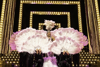 Visuellement, le spectacle est une réussite totale. Les décors et costumes somptueux de Pierre-André Weitz participent pleinement à la magie. Le plateau tournant, véritable cœur du dispositif scénique, permet à la scène de se transformer sous les yeux des spectateurs : appartement bourgeois parisien, scène du cabaret, coulisses animées, ruelle à l’arrière du théâtre ou terrasse d’un café typiquement parisien. Tous les changements se font à vue, révélant les coulisses, les allers-retours ce qui donne au show un mouvement permanent, presque chorégraphique, renforçant l’impression de fluidité. Les costumes, toujours plus extravagants au fil des numéros, participent pleinement à la féerie, sans jamais écraser le propos.