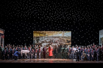 À la tête de l’Orchestre de l’Opéra national de Paris, le chef Kent Nagano insuffle à la partition son énergie et sa clarté, mettant en valeur la tension rythmique et la richesse de la texture orchestrale de John Adams. Dirigés par Alessandro Di Stefano, les chœurs i participent pleinement à la dimension collective de l’œuvre et impressionnent par leur puissance et leur précision. La distribution réunit à nouveau les grandes voix internationales qui étaient présentent à la création en 2023 : Thomas Hampson incarne Richard Nixon déterminé, Renée Fleming prête son timbre lumineux à Pat Nixon, John Matthew Myers campe Mao Zedong, Caroline Wettergreen interprète Jiang Qing, Joshua Bloom est Henry Kissinger et Xiaomeng Zhang donne sa profondeur à Zhou Enlai. À leurs côtés, Aebh Kelly qui fait ses débuts à l’Opéra de Paris, Ning Liang et Emanuela Pascu dans les rôles des secrétaires de Mao complètent cette distribution de haut vol.