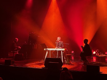 Lorsque les lumières s’éteignent au Théâtre du Casino d’Enghien, la scène accueille trois silhouettes : Alain Chamfort, au chant et au clavier, Vincent Bidal au piano, et la chanteuse animatrice franco-américaine Valli. Le spectacle s’ouvre par deux titres emblématiques, « Exister » et « Manureva » avant que le chanteur ne rejoigne un fauteuil pour entamer cette conversation publique qui constitue l’ossature du spectacle.
