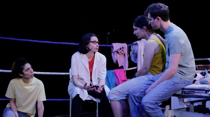 Le décor, pensé comme un ring de boxe symbolise ce combat pour la vie et l’ enfermement à l’ hôpital ; image forte qui rappelle que chaque jour est une lutte, chaque instant un round à gagner contre la maladie .