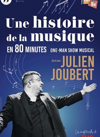 One-man show musical De et avec Julien Joubert . Julien Joubert seul en scène durant une heure vingt relate l’histoire de la musique depuis les hommes préhistoriques jusqu’à nos jours .Il … Continuer la lecture de Une histoire de la musique en 80 minutes