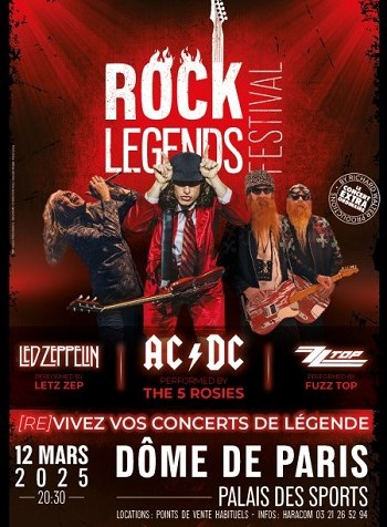 Tribute to « Led Zeppelin », « AC/DC » et « ZZ Top ». Un concert d’anthologie regroupant le même soir, trois légendes absolues de l’histoire du rock. Le 12 mars 2025 au Dôme de Paris. … Continuer la lecture de Rock Legends