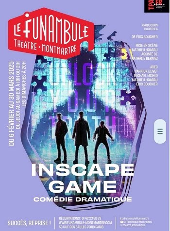 Comédie d’Eric Boucher. Quatre amis d’enfance se retrouvent dans un bar pour bavarder, rire, se divertir mais ce soir-là règne une atmosphère très étrange. Quelque chose de nouveau semble s’inviter. … Continuer la lecture de Inscape game/théâtre