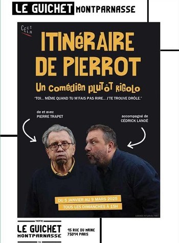 De et avec Pierre Trapet .Pierre Trapet dresse un auto-portrait mêlant humour, émotion et questions existentielles. Il est assisté de Cédrick Lanoë qui lui « souffle » les répliques que … Continuer la lecture de Itinéraire de Pierrot