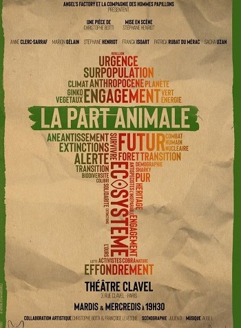 Dans un avenir proche, six activistes écologiques radicaux échangent leurs opinions divergentes sur les actions à mener pour sauver l’humanité des effets funestes du réchauffement climatique. Une plante, dont ils … Continuer la lecture de La part animale/théâtre